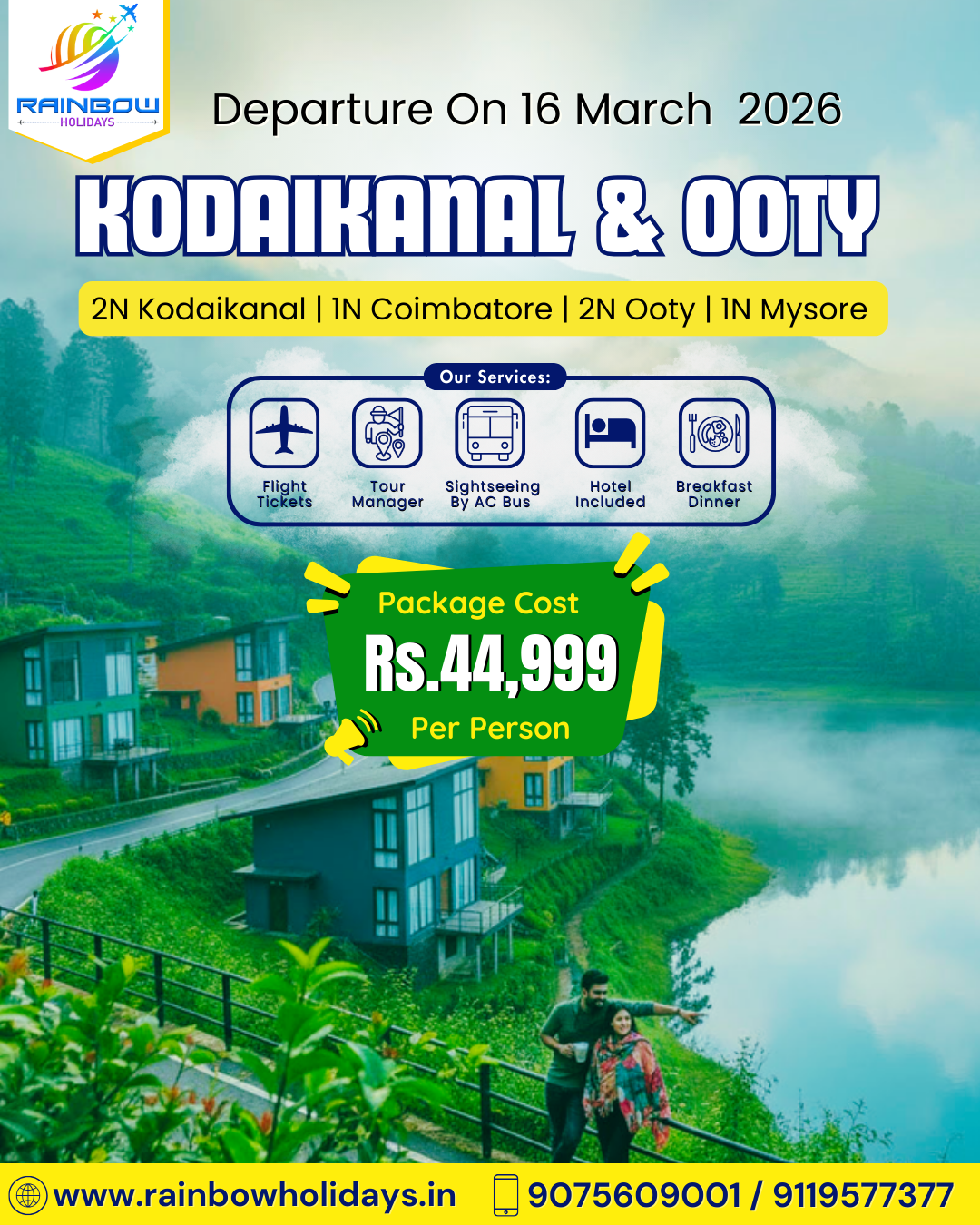 Travel with Rainbow Holidays, a trusted travel agency in Pune & PCMC, and explore the beauty of Kodaikanal, Ooty, Coimbatore & Mysore in one perfectly planned trip.